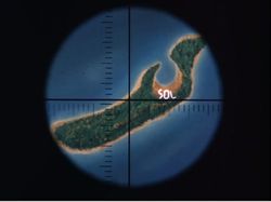 • Three layouts are shown of the island through the series. The photos at upper left from Forward March and Man With a Net episode show identical maps of the Island except the waterway from the lagoon bends counter-clockwise instead of clockwise as it does on the actual exterior set. In Splashdown, a different map of the island from space is shown which leaves out the mountains and clearings. Apparently, there is a small lagoon a short walk from the hut area and a wide beach where the S.S. Minnow was shown wrecked in the First Season.