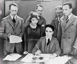 United Artists (UA) is an American film and television entertainment studio. The studio was founded in 1919 by D. W. Griffith, Charlie Chaplin, Mary Pickford, and Douglas Fairbanks with the intention of controlling their own interests rather than depending upon commercial studios.[1] The studio was repeatedly bought, sold and restructured over the ensuing century. The current United Artists is an in-name-only successor to the original company, which was acquired by MGM in 1981.[2]